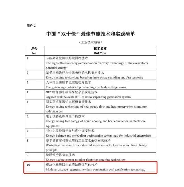 “模块化梯级回热式清洁燃煤气化技术”成功入选中国“双十佳”最佳节能技术