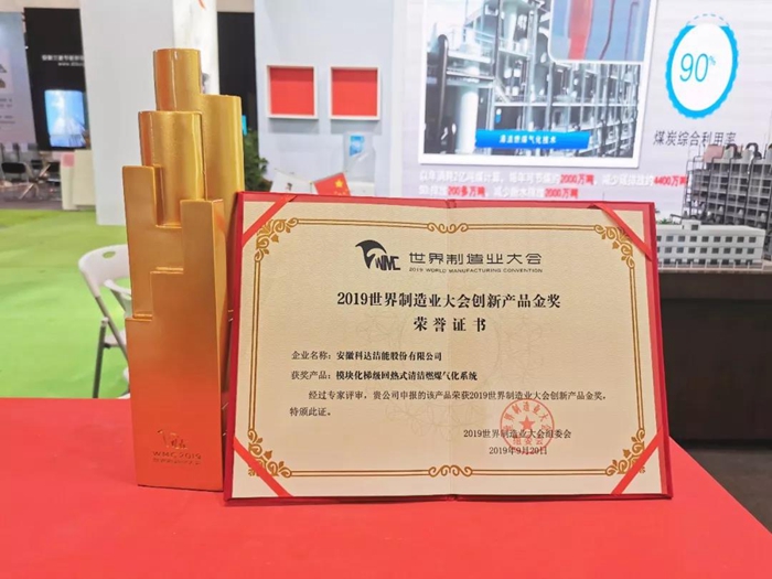 9月20日,2019世界制造业大会在合肥滨湖国际会展中心拉开帷幕,安徽科达洁能携手安徽科达机电共同受邀参加本次盛会,其中安徽科达洁能主导产品“模块化梯级回热式清洁燃煤气化系统”荣获“创新产品金奖”。