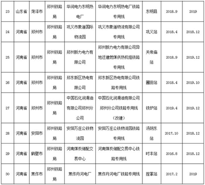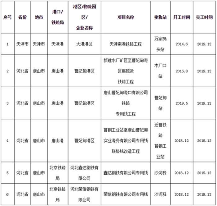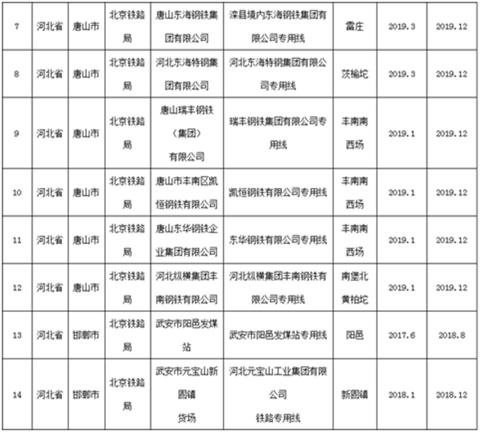 12.加快推进铁路专用线建设。各地要逐一核实《交通运输部等九部门贯彻落实国务院办公厅〈推进运输结构调整三年行动计划(2018-2020)〉的通知》中铁路专用线重点建设项目(见附件2)落实情况,按照《关于加快推进铁路专用线建设的指导意见》要求,积极推进铁路专用线建设;2019年10月底前,各地要对大宗货物年货运量150万吨及以上的大型工矿企业和新建物流园区铁路专用线建设情况、企业环评批复要求建设铁路专用线落实情况等进行摸排。对工程进度滞后的,要分析查找原因,分类提出整改方案,确保2020年基本完成。若涉及规划调整、项目变更、企业搬迁退出等因素不再建设的,地方可提出变更申请,由主管部门确认。