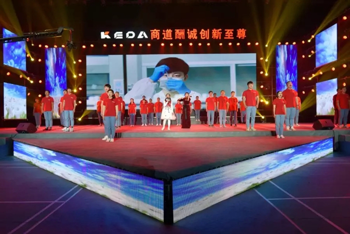 整场晚会以“创新之路”“时代骄傲”“自信前行”三个篇章分别展开叙述,通过催人奋进的歌舞、鼓舞士气的方阵拉歌、感人激励的叙事朗诵、正能量脱口秀、艰苦奋斗的视频等多种形式呈现了科达人勇往直前、朝气蓬勃的精神面貌,传递出科达将继续向科技高峰奋力攀登,向“科达梦”扬帆远航的美好愿景。晚会现场还颁发了优秀员工、忠诚员工、2019“科达骄傲”人物及团队(含提名奖)等奖项,接近尾声时,全体科达人合唱《科达之歌》,唱出二十七年来的荣耀和感动;董事长边程带领公司高管登台与全体演员一齐高唱《明天会更好》,唱出明天的展望,心中的期盼和豪迈,晚会落下帷幕。