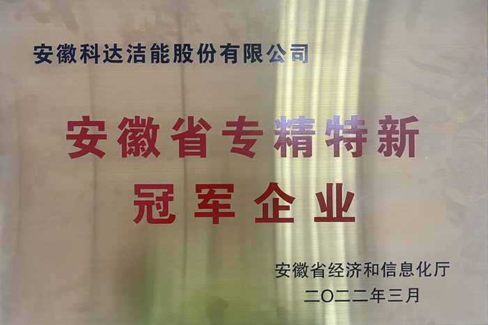 3月份,安徽省经济和信息化厅公布了2022年安徽省专精特新冠军企业名单,安徽科达洁能股份有限公司位列其中。